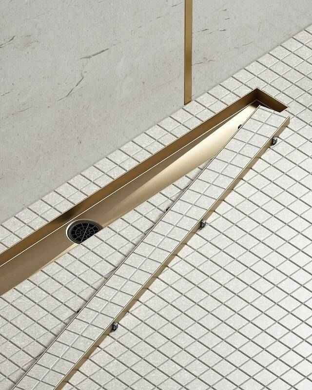 Душевой лоток Timo Drain System 100 DS230210/17 с решеткой Золото матовое / под плитку